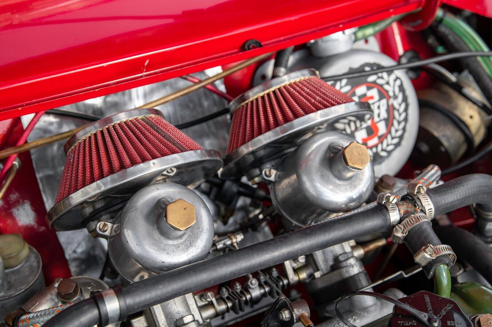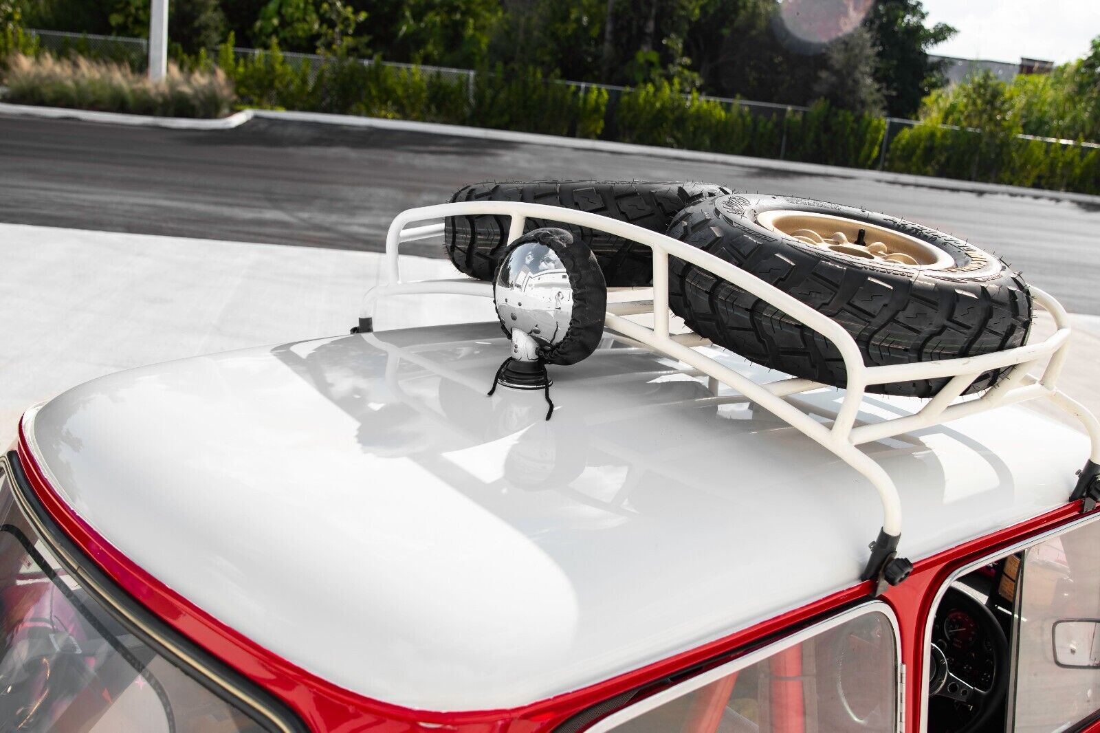The car, with some rust evident, underwent a four-year restoration after being rescued from the museum. The undercarriage and engine bay were stripped to bare metal and repainted, and all mechanical components—the motor, suspension, steering, and brakes—were rebuilt. The body received a sympathetic restoration, with the competition patina intact (though not the mud).